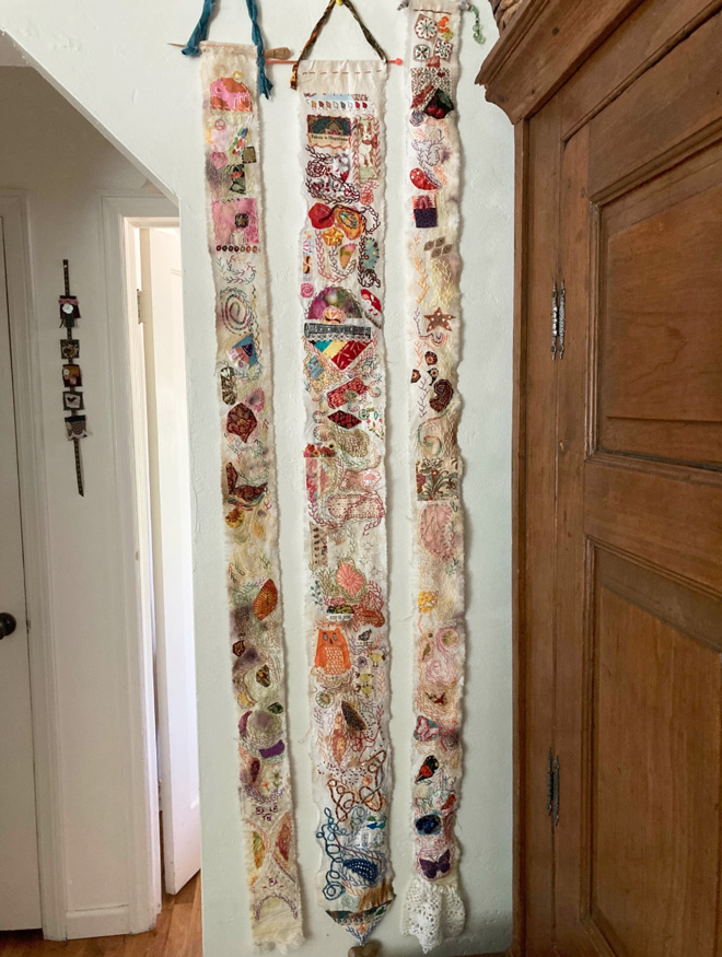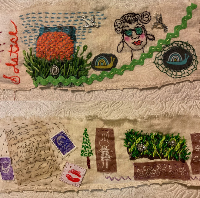 Look for inspiration in the materials we’re working with (mountains of scrap fabric) our surroundings – the squam environment and experience and our imaginations. This is a playful and process driven day. The little book is a place to experiment and generate ideas, one thing leads to another if you let it. Ann will share tools to get you moving creatively, generate ideas and access deeper parts of your imagination. What do you see? What do you hear and feel? How can you translate your experience into stitch.