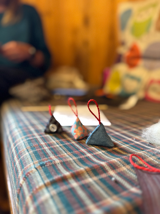 On Saturday I offered a 1 hour sew-along on (I can’t help myself). We made Tetra Charms. It was so much fun I might do it again next year. FYI if you want to make one used a fabric rectangle that is 3 inches by 1 and 5/8th inches and find a tutorial here.
